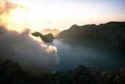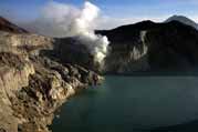 Kráter Kawah Ijenu leží ve výšce 2148 metrů. Když vyjdete na jeho vrchol, otevře se vám pohled na ohromné a nádherné modrozelené sirné jezírko, které leží uvnitř kráteru (vyhněte se pokušení v něm smočit ruce, díky síře prý obsahuje spíš kyselinu než vodu). V jednom rohu uvidíte mohutná oblaka kouře. To je místo, kam jsou svedeny sirné páry, které ze sopky vycházejí. Je to také místo, kde jsou tyto páry ochlazovány, čímž těžaři dosahují kondenzace těchto par a tvorbu síry. Vydat se na toto místo chce trochu odvahu. Štiplavý sirný zápach, který se díky větru každou chvíli žene jiným směrem, docela dusí. Ale hlavně se drží uvnitř kráteru, kam je třeba sestoupit, aby si člověk těžbu mohl prohlédnout zblízka.