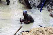 Těžaři zde pracují ve skupinách Vytipují si místo, kde by mohli drahokamy být a zeminu začnou kopat. Mísí ji s vodou a takto vzniklou břečku pumpují do jakýchsi "bazénků", kde se tato břečka prorýžovává a hledají se diamanty. Místní tvrdí, že úspěšnost těžby je dobrá, prý v průměru najdou jeden diamant denně. Nepředstavujte si ale nějaké ohromné diamanty, nacházejí malinké kamínky. Kromě diamantů nacházejí i zlato a různé další drahokamy.