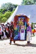 Procesí má ale pouť zpět ke kostelům dlouhou. Co chvíli totiž zastavuje a mniši za bubnování a odříkávání liturgických textů tančí. Vždy vybraný mnich začíná bubnovat a další zpívat. Před nimi se formují dvě řady tančících mnichů. Všichni ostatní včetně poutníků, kteří procesí sledují, chřestí a tleskají. Tanec trvá skoro deset minut. Když skončí, tak se procesí opět dává do pohybu. Ujde přibližně 500 metrů a vše se opakuje. Vysocí kněží pozorují přípravy zpěváka a bubeníka. Vybírají se mniši, kteří budou tančit. Opět následuje desetiminutový tanec, který je stále stejný. Poté se procesí může dát zase do pohybu. Cesta zpět ke kostelům trvá vždy několik hodin. Oslavy končí, když jsou symboly tabotu uloženy zpět do kostelů na své místo.