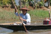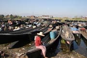 Život na jezeře je rozprostřen do 17 vesnic, které vznikly buď na břehu či na ostrovech. Z jejich rozmístění je jasné, že doprava mezi nimi je možná pouze po vodě. Většina dopravy probíhá v malých dřevěných loďkách s pádly. Anebo moderněji ve větších motorových. Ale motory zde znají relativně krátkou dobu, historicky zde byly loďky poháněny pouze pádly. Vyvinul se zde specifický styl pádlování, na který jsou místní hrdí. Při pádlování na malých dřevěných lodích stojí a pomáhají si nohou. V podstatě jakoby nohu omotali okolo pádla a pomocí ní pádlo poháněli. Opravdu zvláštní technika. Na jedné noze stát, na loďce, která se houpe, a druhou nohou pohánět pádlo. Toto pádlování má zde ale své výhody. Přejet celé jezero na délku je vysilující a pohánění pádla nohou dá odpočinout rukám a současně v noze je i větší síla. Z výšky je také dobře vidět, kde rostou vodní hyacinty a kde plavou ostrůvky z rostlin, kterým je lepší se vyhnout. A nakonec při chytání ryb je lépe vidět do vody, kde by se mohly ryby schovávat a také se mohou použít obě ruce na práci s pastí na ryby, do které místní ryby chytají. Důmyslný systém pádlování zde má rozhodně své opodstatnění.