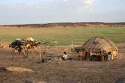 Kočovní Tuaregové bydlí v dočasných kempech, kde si staví jednoduchá obydlí. Často se stěhují podle stavu vody a pastvin pro svá stáda velbloudů a malých koz. Společně v kempu žijí většinou rodiny či příbuzenské klany. Staví si několik typů obydlí. Jedním z nich jsou stany, kde jako hlavní materiál jsou použity zvířecí kůže, které jsou napnuté na klaccích. Z jedné strany, z té které většinou nefouká vítr, je vchod, který se nijak nezavírá. Je otevřen do krajiny. Na zemi leží rohože. Nejbližší okolí domu je ohraničeno kameny. Alternativou jsou chýše z rohoží, které se více podobají tradičním černošským obydlím ze Západní Afriky. Příbytky jsou velice skromné. Majetek minimální. Několik plastových nádob na vaření, voda se tradičně uchovává v kožených vacích. Spí se na rohožích či na kůžích. Ve dne i v noci je celkem teplo, takže jednoduché deky na přikrytí stačí. Vaří se venku na ohništích. Problém je se dřevem, kterého je zde, jako vody, neustálý nedostatek. Proto se na vaření používá i sušený trus.