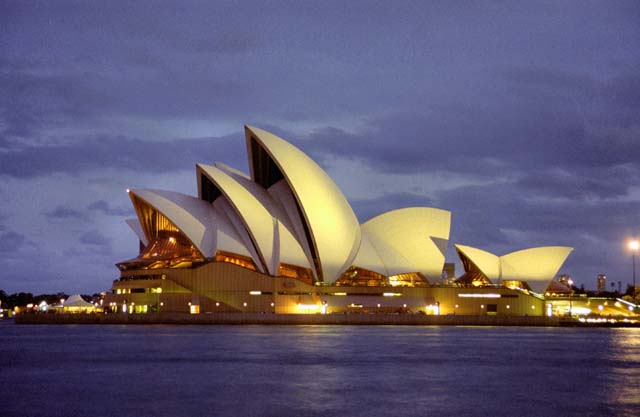 Opera v noci, Sydney. Austrálie.