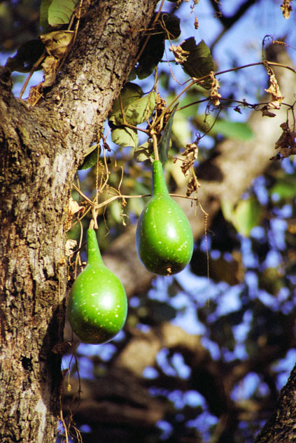 Plod lahvovníku, který zde nazývají kalabaš a používají k úschově nápojů. Sever, Etiopie.