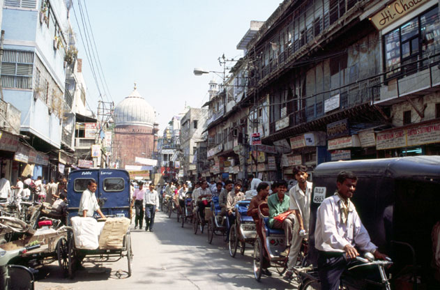 Prodejce oblečení ve starém Dilí. Indie.
