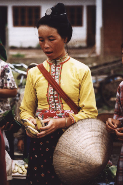 Žena z horského kmene Yao na tržišti v Muang Sing. Laos.