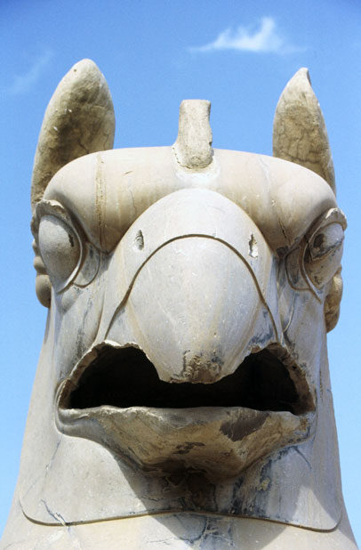 Kamení strážci (griffin-headed beasts) Persepolských vykopávek. Írán.
