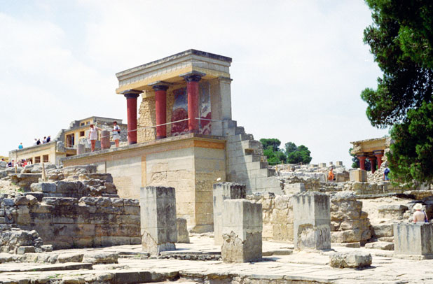 Knossos, Minoanské hlavní město. První palác byl postaven okolo 1900 B.C., Kréta. Řecko.