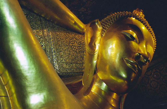 Ležící Buddhav chrámu Wat Pho. Bangkok. Thajsko.