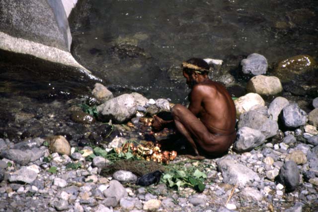 Mytí sladkých brambor. Papua, Indonésie.