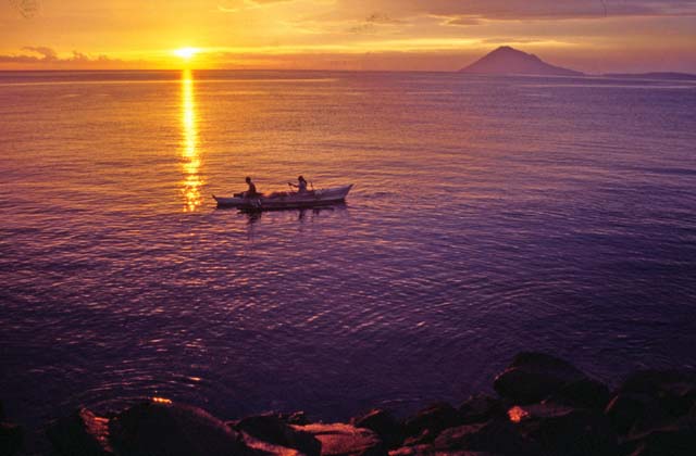 Podvečer v Manadu. Sulawesi, Indonésie.
