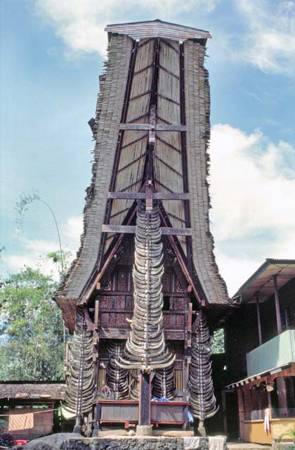 Tradiční dům tongkonan, oblast Tana Toraja. Sulawesi, Indonésie.