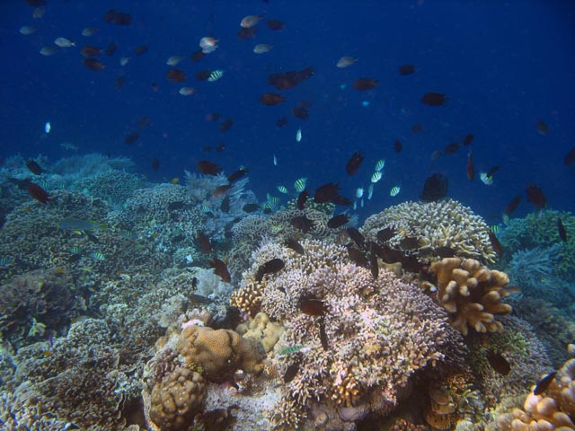 Potápění u ostrova Bunaken, lokalita Alban. Sulawesi, Indonésie.