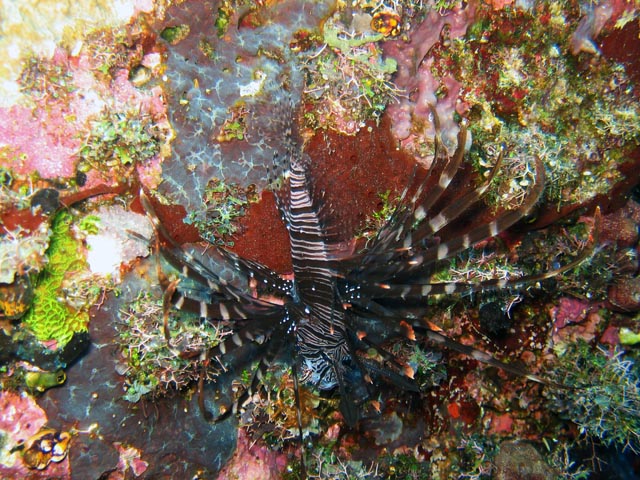 Lionfish. Potápění u ostrovů Togian, Kadidiri, lokalita Taipee Wall. Sulawesi, Indonésie.