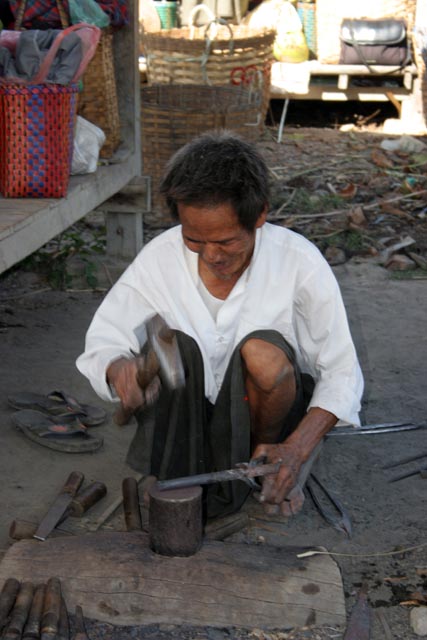 Kovář a jeho dílna na trh, jezero Inle. Myanmar (Barma).