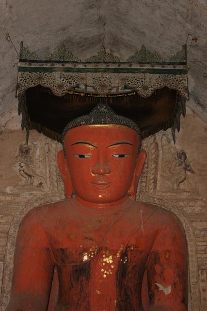 V některých chrámech se stále dochovaly vnitřní malby. Bagan. Myanmar (Barma).