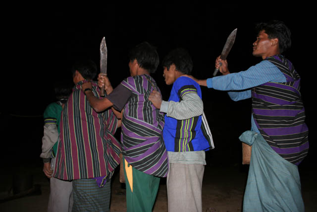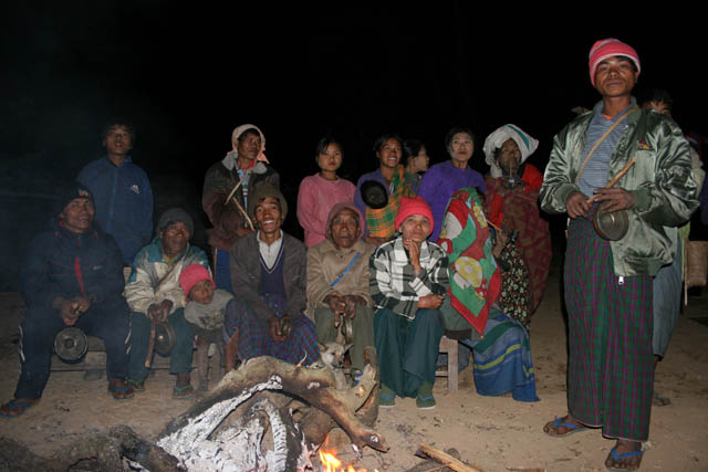 Kapela, která hraje k tradiční tancům. Vesnice Aye, provincie Chin. Myanmar (Barma).