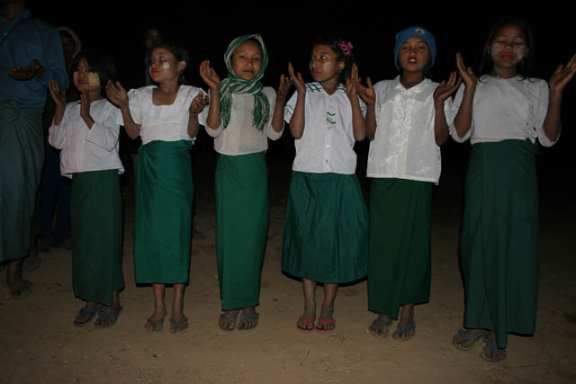 Večerní pohoda během tanců. Vesnice Aye, provincie Chin. Myanmar (Barma).