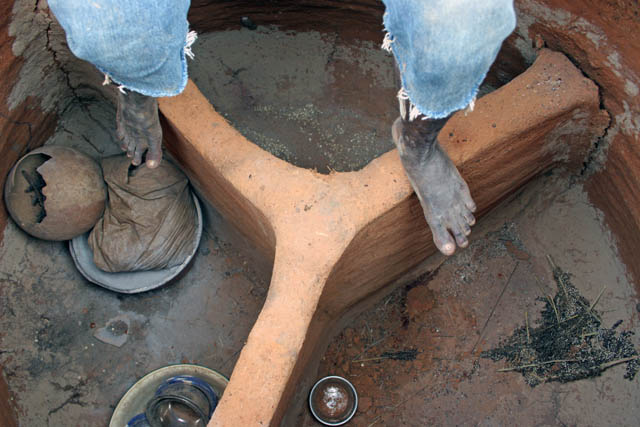 Vstup do sýpky domu tata somba. Oblast Boukoumbé. Benin.
