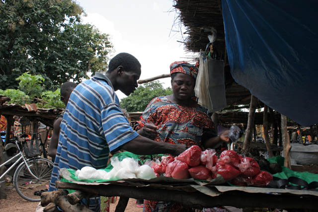 Lokální trh ve vesnici Boukoumbé. Benin.