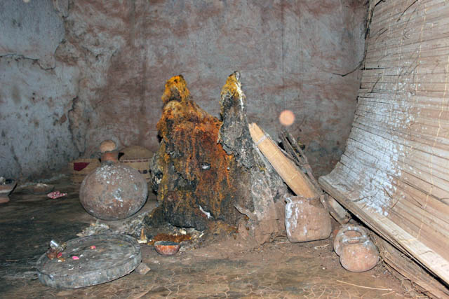 Oltář na obětiny ve Voodoo chrámu "Temples des Serpents", město Ouidah. Benin.