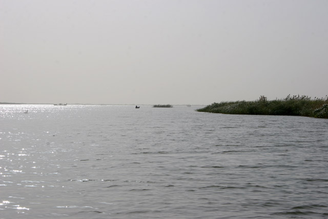 Ústí řeky Chari a pohled na jezero Čad. Kamerun.