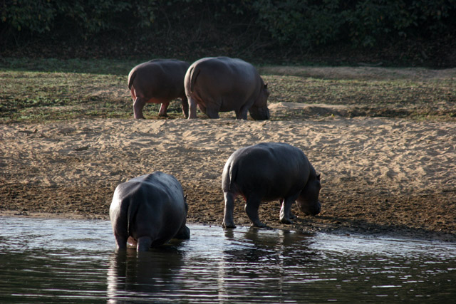 Hroši v Národním parku Bénoué. Kamerun.