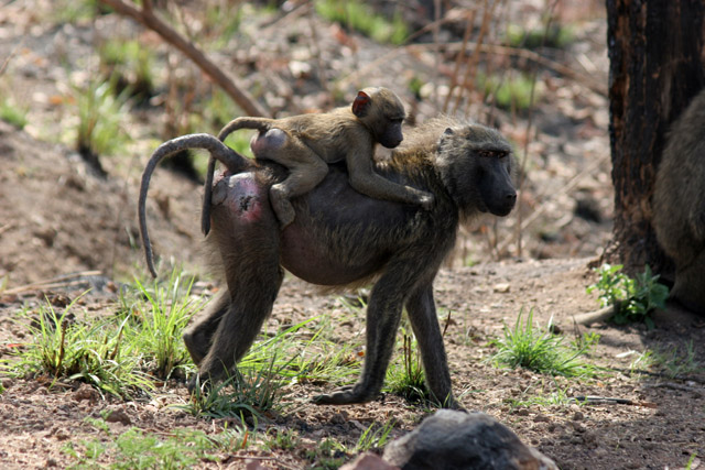 Opice jsou často k vidění podél hlavní silnice N'Gaoundéré - Maroua. Kamerun.