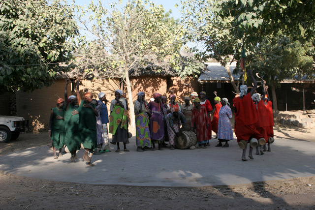 Příprava na tradiční tance ve vesnici Oudjilla. Tančí královské manželky. Kamerun.