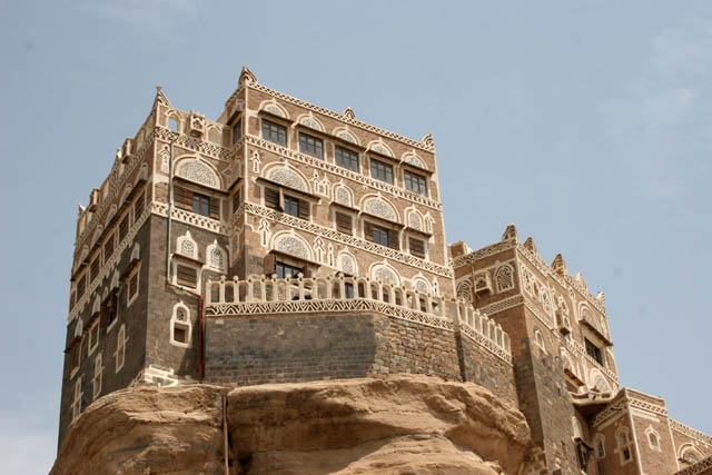 Známý 'kamenný palác' Dar al-Hajar ve Wadi (údolí) Dhahr. Jemen.