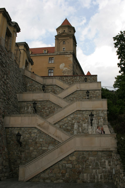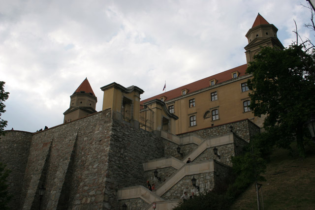 Bratislavský Hrad, postaven v 13. století, je mohutná obdélníková stavba se čtyřmi rohovými věžemi. Hrad se nachází nad Dunajem na vrcholku skály Malé Karpaty v centru Bratislavy. Slovensko.