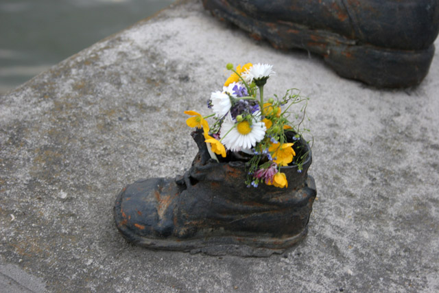 Památník obětem Války, nábřeží Dunaje, Budapešť. Maďarsko.