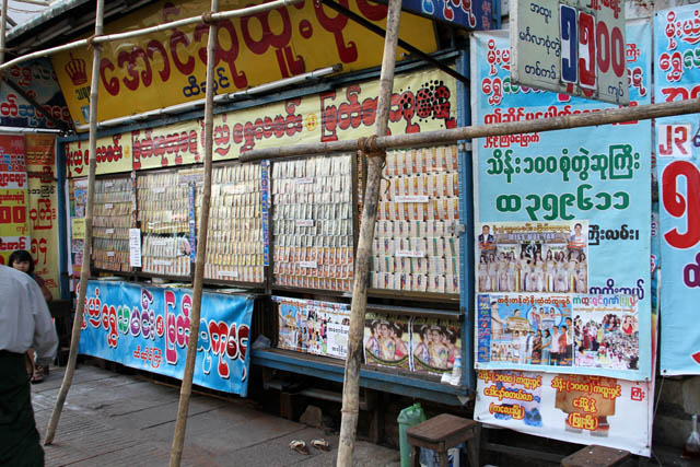 Loterie - prodej losů, Yangon. Myanmar (Barma).