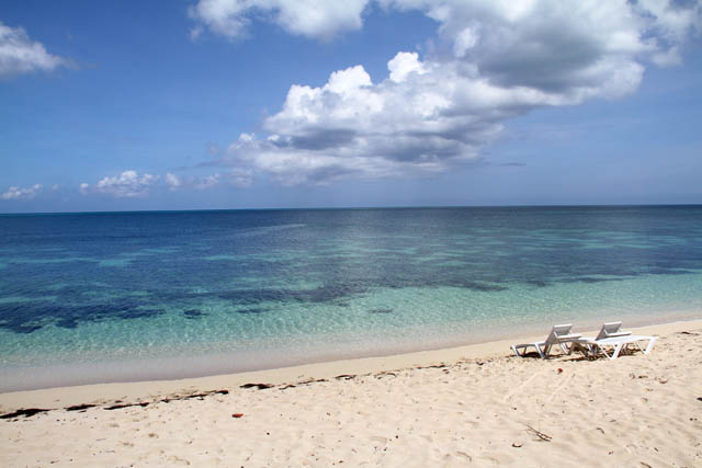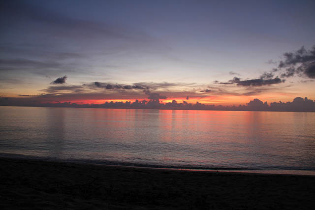 Západ slunce nad pláži blízko hotelu Villa Cabo San Antonio, Národní park Península de Guanahacabibes. Kuba.